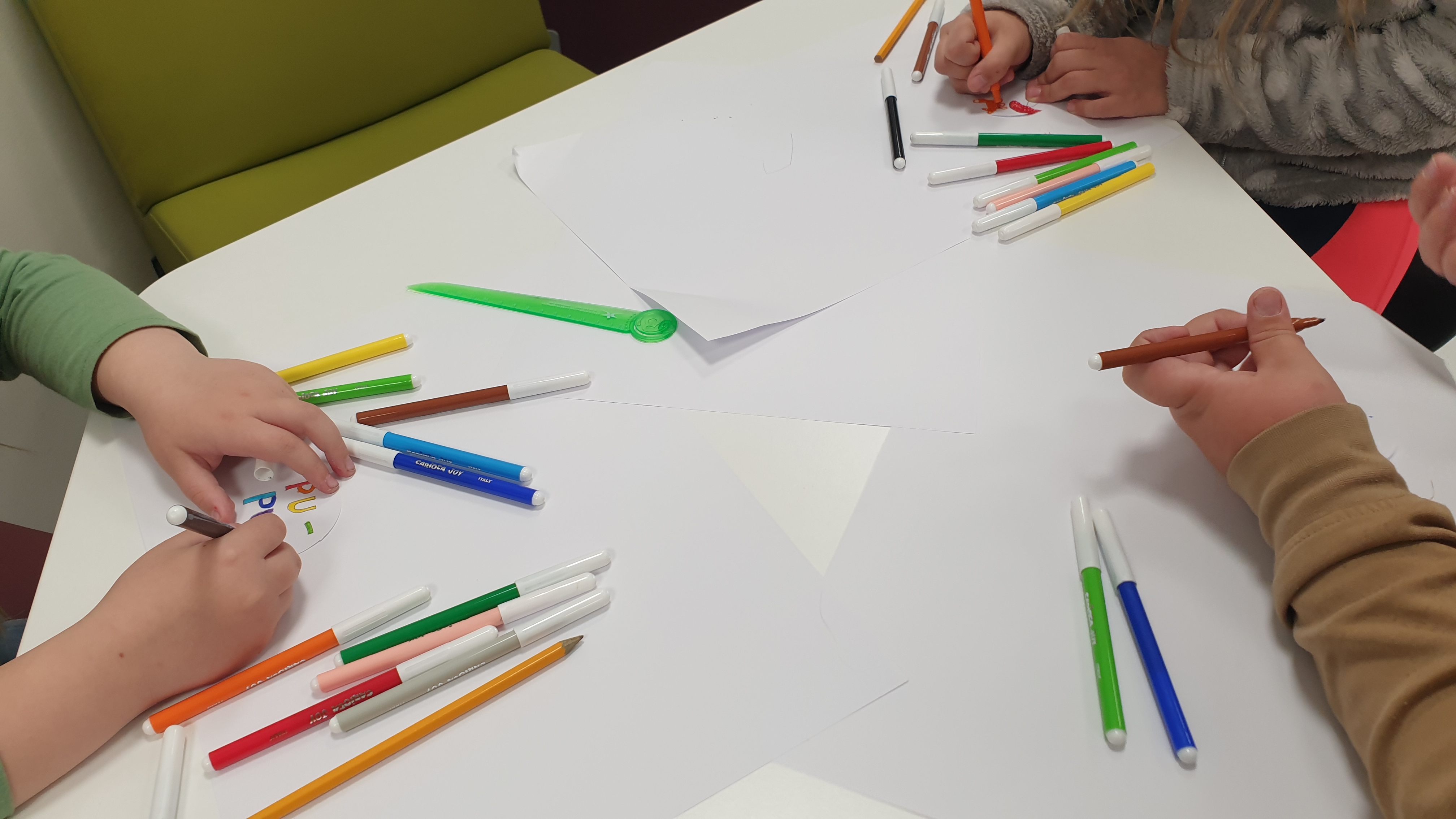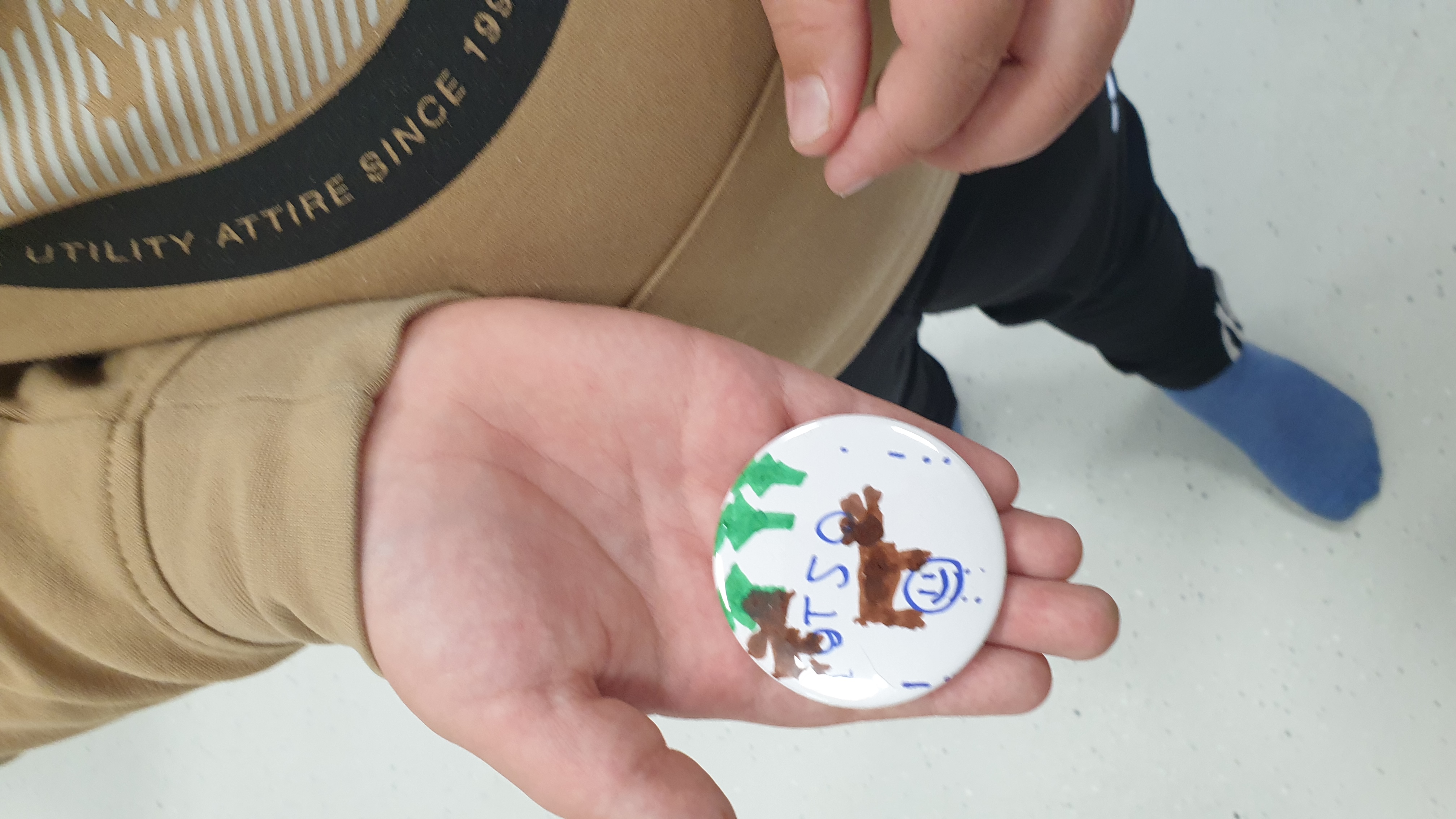 Tutustuimme toisiimme ja jotta nimet (tai tonttunimet) muistettaisiin, sai jokainen piirtää ja tehdä oman nimipinssin.
