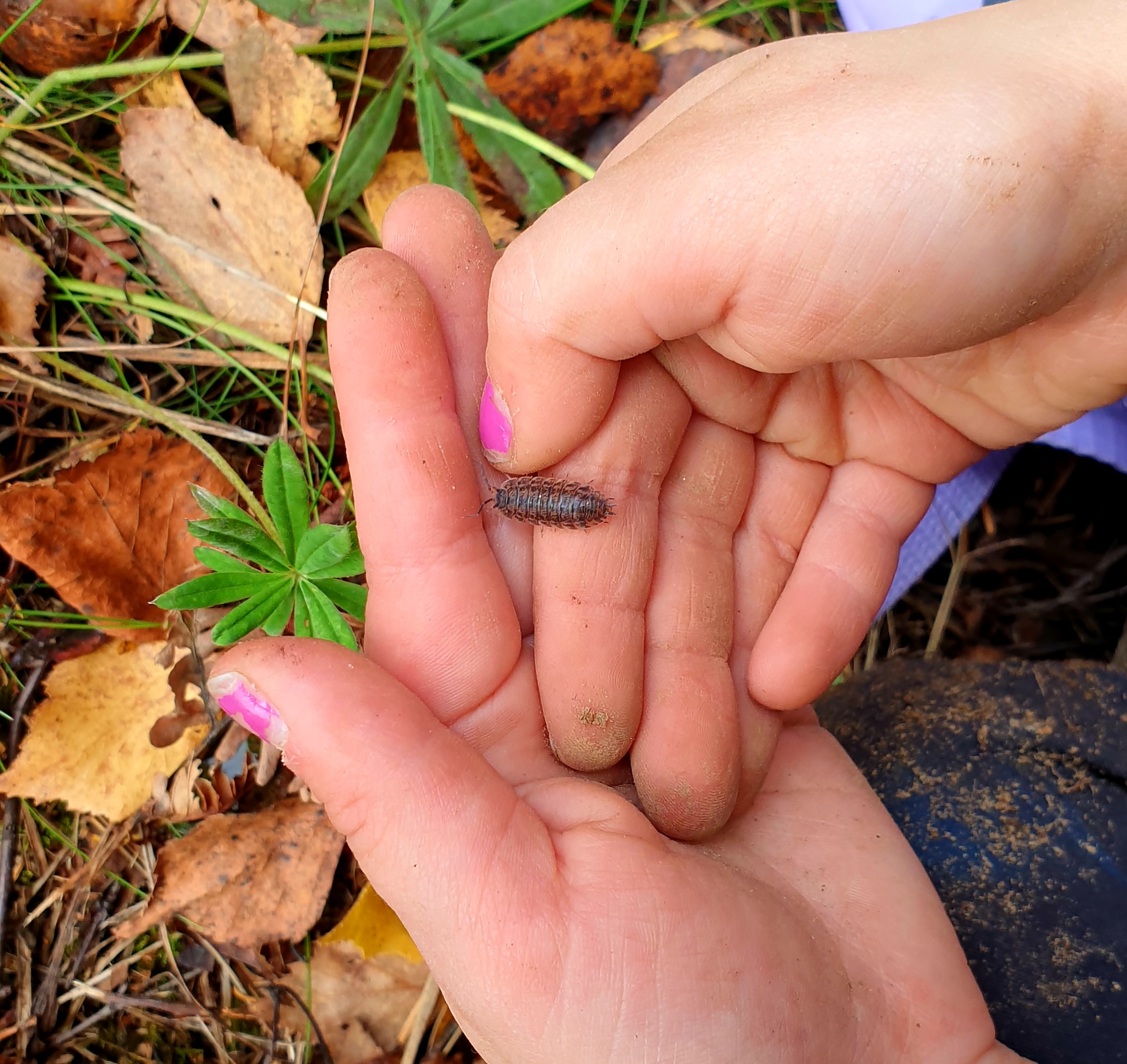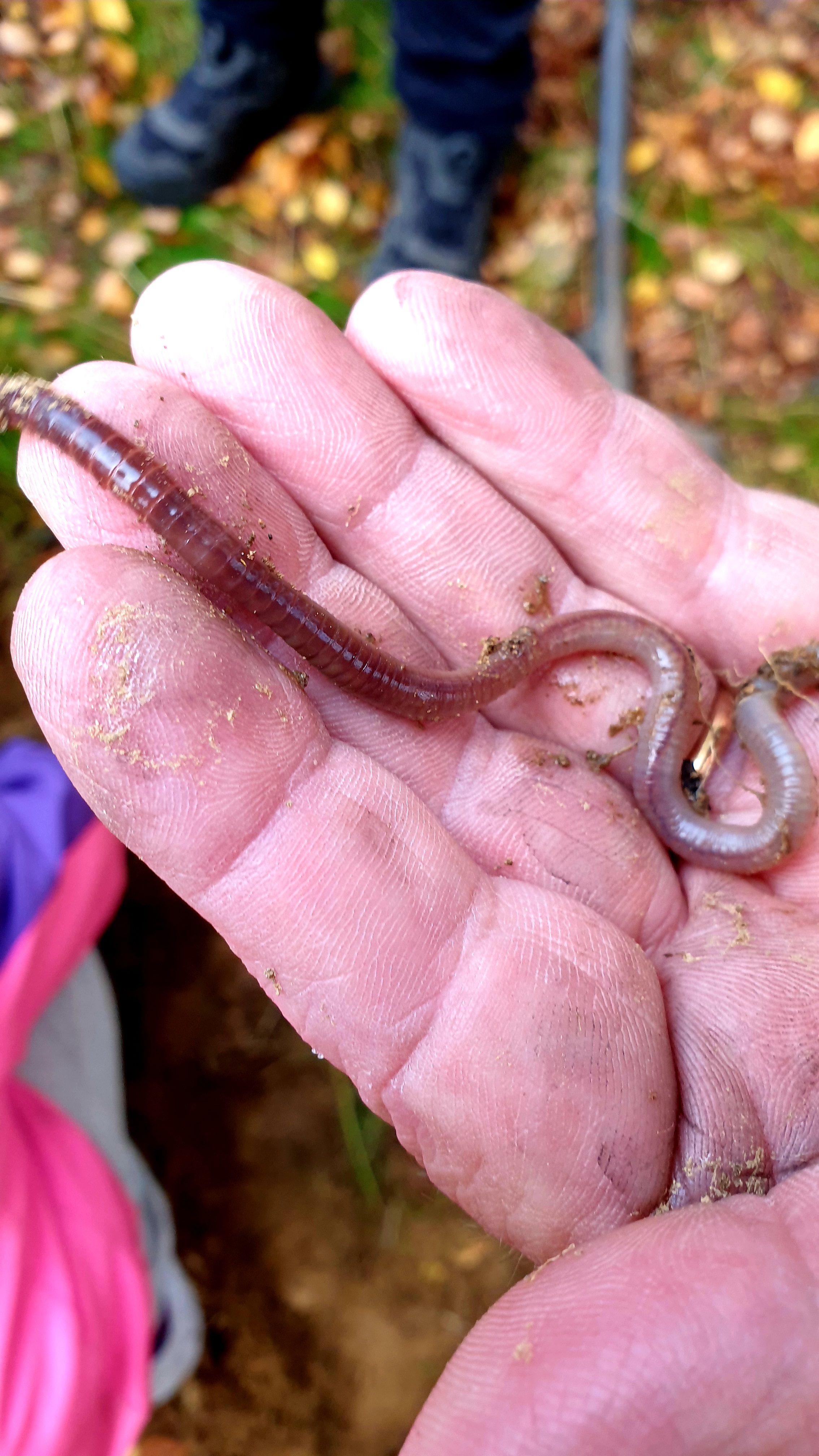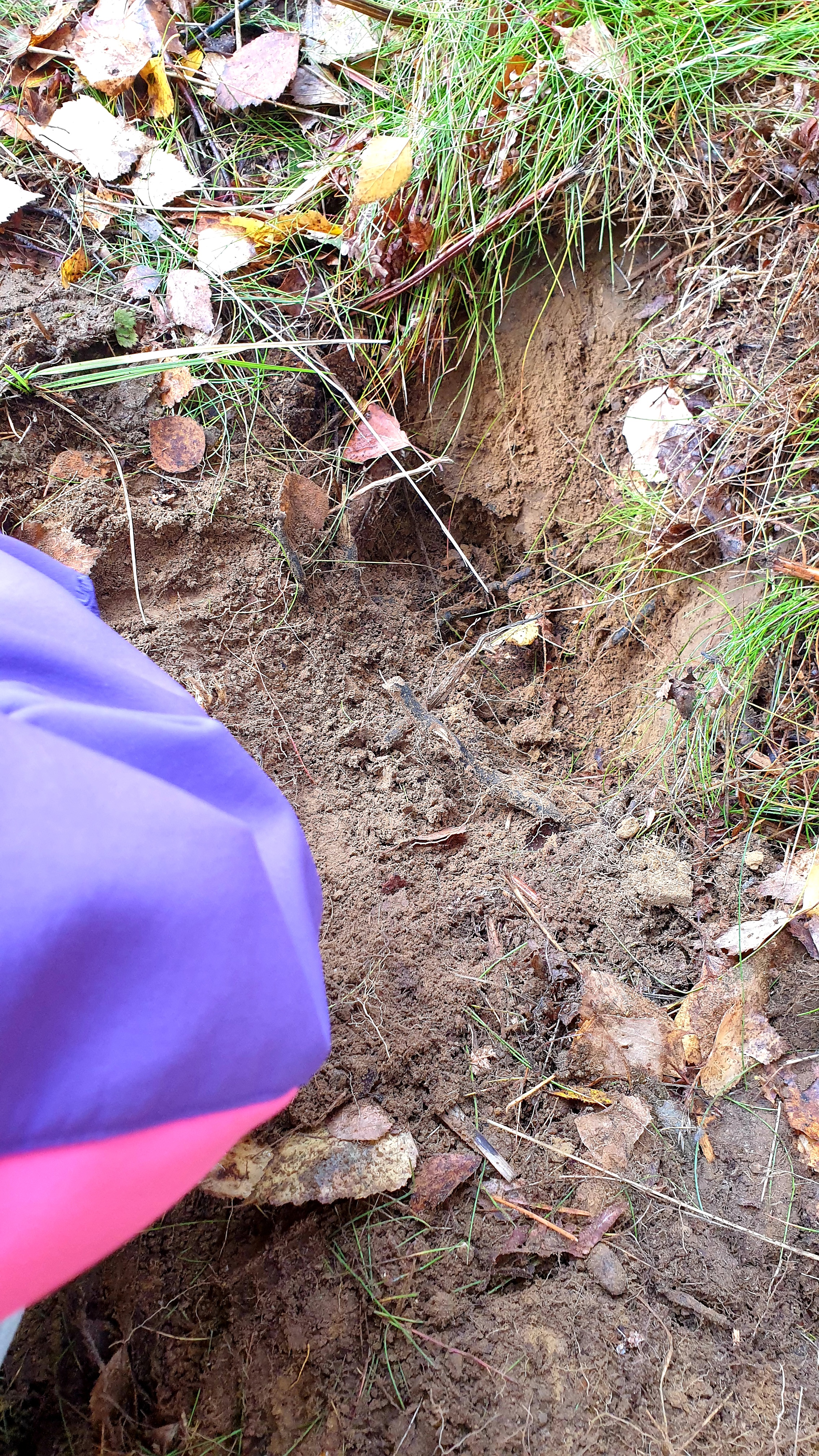 Kävimme tutkimassa, mitä maaperä koulun lähellä sisältää. Kaivoimme tätä varten ihan pikkuruisen montun rinnemaastoon. Sieltähän löytyi ohuen multa-/hietakerroksen jälkeen hyvin hiekkapitoista maata, sienirihmastoja, juuria, lahopuutakin ja kaksi lieroa, yksi tuhatjalkainen ja lisäksi pari ötökkää, joita emme tunnistaneet. Mutta se on todettava, että aika paljon elämää mahtuu ihan pieneenkin maaperälänttiin! Ja tietysti monttu peitettiin tutkimisen jälkeen. :)